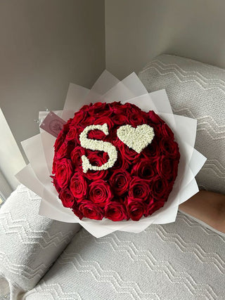 24 Red Roses Bouquet with S-Shaped Letters & Heart Arrangement